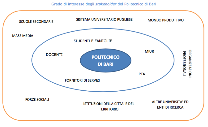 Studenti/Famiglie: sono gli studenti dell’ateneo che oggi partecipano alle attività formative, gli studenti potenziali (futuri) e gli studenti laureati (https://alumni.poliba.it/). Anche le famiglie degli studenti sono importanti perché rappresentano un soggetto determinante per i percorso universitario.