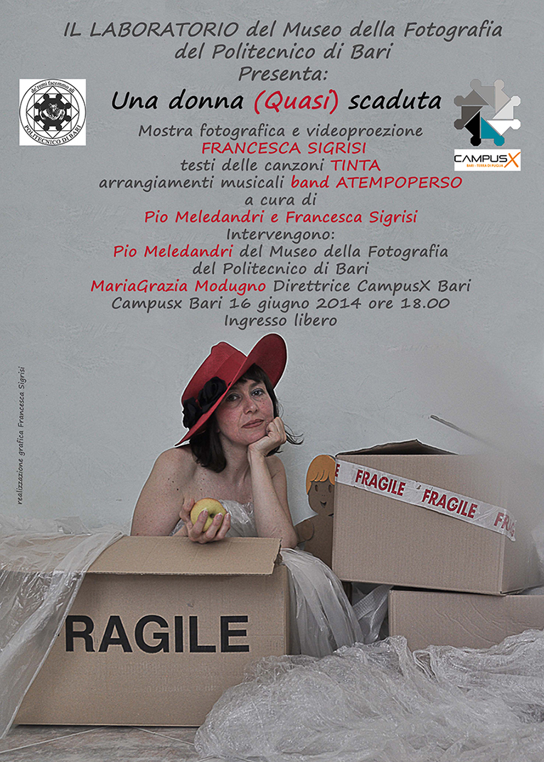 “UNA DONNA (QUASI) SCADUTA” che dà il titolo all’ evento composto dalla mostra fotografica di Francesca Sigrisi (che rende più accattivante il percorso grazie ad alcune installazioni) e dalla presentazione del libro omonimo scritto da Tinta.